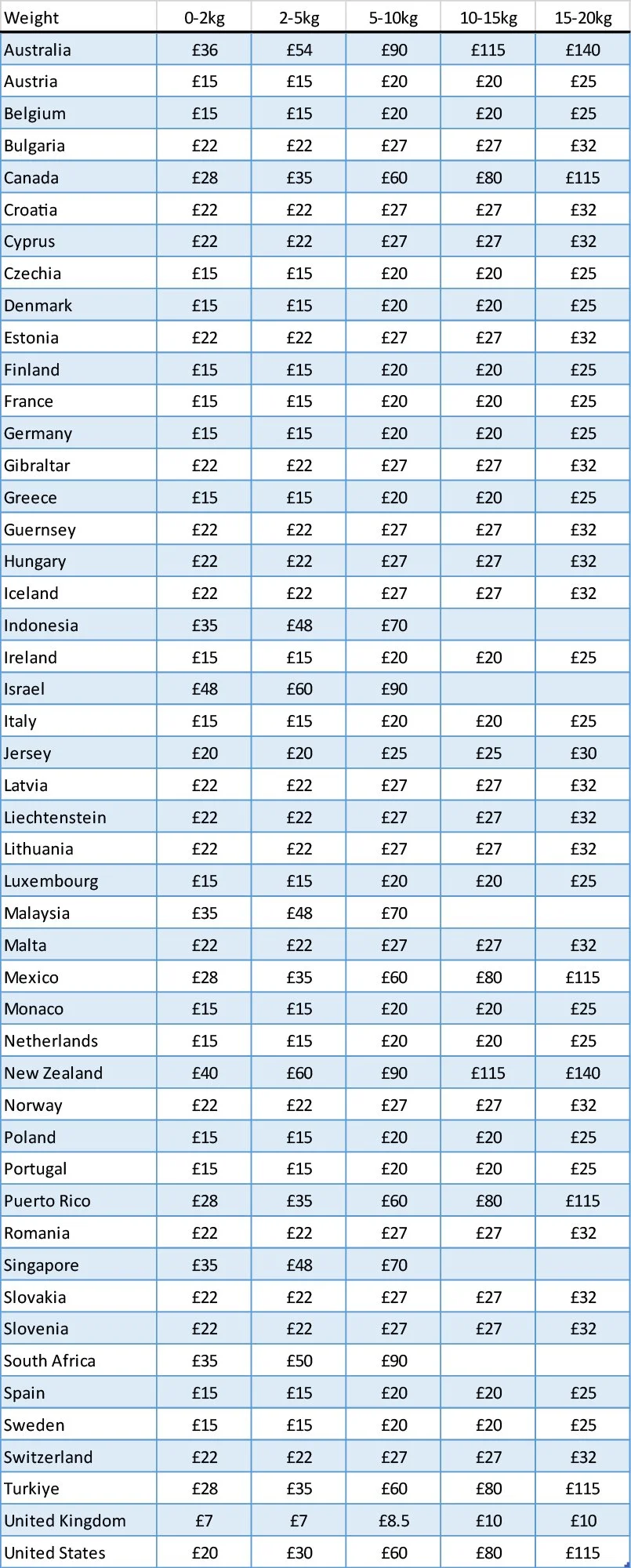Shipping cost is calculated by weight, additional fees may be due on import depending on local tax rules.